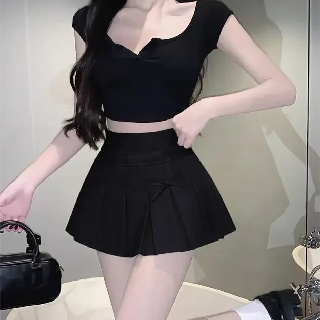 黒とグレーのプリーツスカートでまとめるなら、白とはまた違った“大人っぽさ”や“モード感”が引き立つスタイリングができます。黒は“シャープで強め”、グレーは“柔らかく都会的”という違いがあるので、なりたい雰囲気に合わせて選ぶと楽しいです。