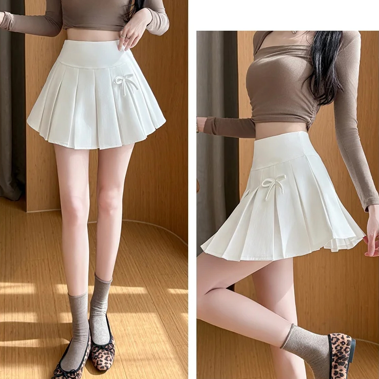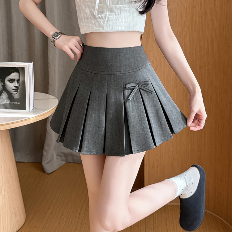 ハイウエストAラインボックスプリーツハーフスカート リボン付き スーツ/女子高生風